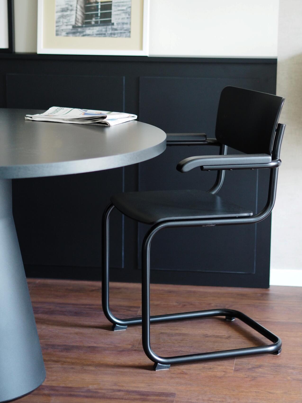 S33を基に部材を見直し、機能美を追求したモデルとなります。その結果、洗練されたデザインとスティールパイプ+成型合板という純粋な構造、改良された座り心地を持つS43が生み出されました。